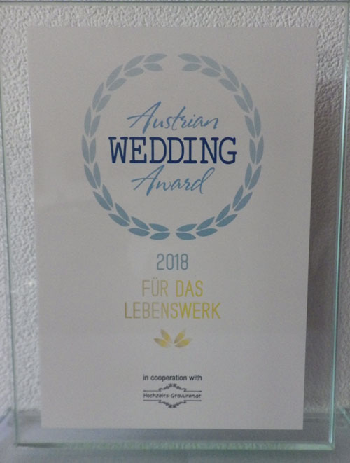Als krönenden Abschluss unserer Tanzmusik - Laufbahn für Hochzeiten erhielten wir 2018 den "Austrian Wedding Award" für unser Lebenswerk. Eine Anerkennung, die uns sehr berührt und dankbar an unsere aktive Zeit zurückblicken lässt.
